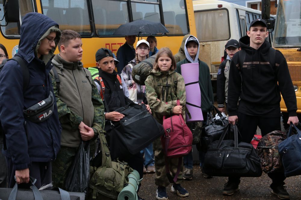 Родители, пришедшие проводить своих детей, обнимали их перед посадкой в автобусы. Одна мама сказала, что ее сын едет в лагерь впервые, он сам выразил готовность провести время в этом лагере.