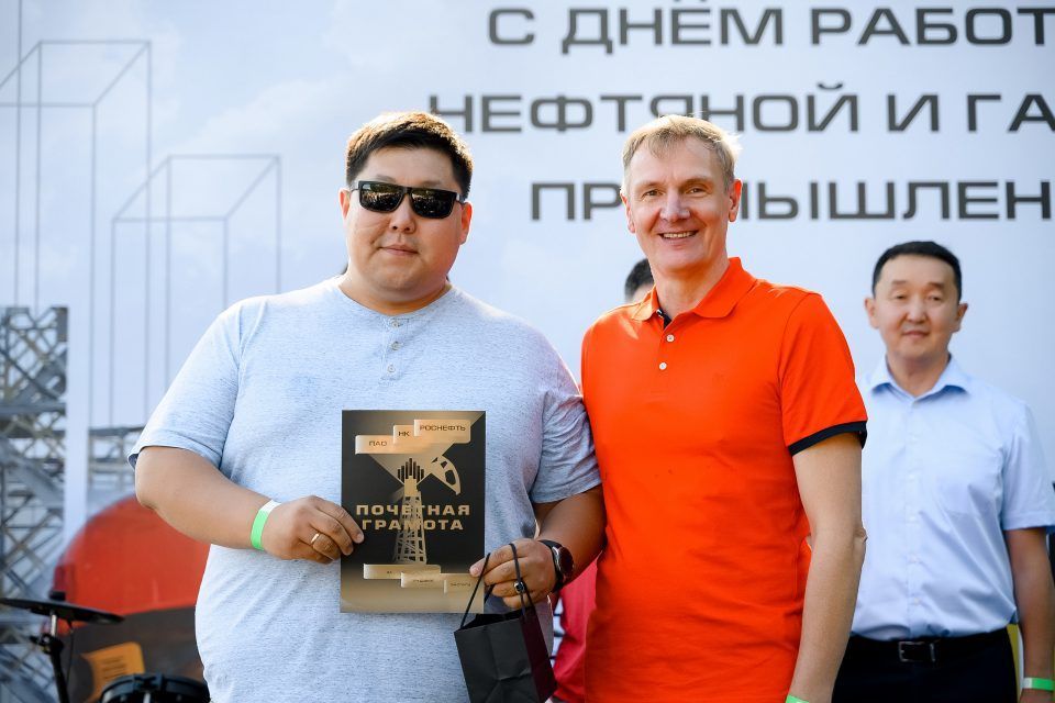 Сотрудникам предприятия «Таас-Юрях Нефтегазодобыча» (входит в нефтегазодобывающий комплекс НК «Роснефть») вручили награды ко Дню работников нефтяной и газовой промышленности. Почетными грамотами, благодарностями и нагрудными знаками от министерства энергетики РФ, министерства промышленности и геологии и министерства финансов Якутии, Мирнинского и Ленского районов, а также компании «Роснефть» и ТЮНГД награждены 90 сотрудников. Из них трое удостоены государственных наград РФ. Каждый награжденный — гордость предприятия, на них равняются коллеги.