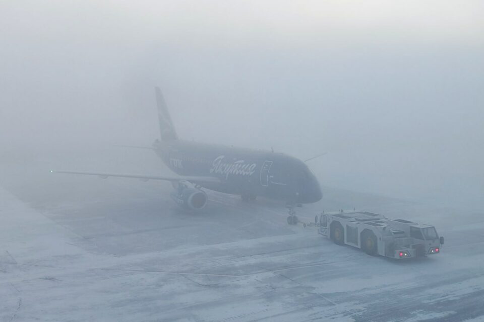 Аэропорт Якутск, несмотря на густой туман, продолжает принимать и отправлять рейсы по расписанию. Об этом утром 10 февраля сообщили в пресс-службе воздушной гавани.