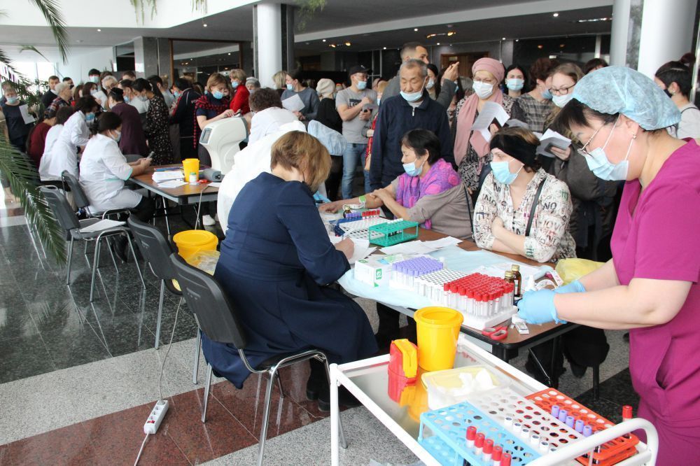 В рамках акции все желающие могли получить консультацию терапевта, сдать кровь на онкомаркеры, ВИЧ-инфекцию, дополнительные анализы после перенесенного заболевания COVID-19. Здесь же можно было измерить внутриглазное давление и сделать электрокардиографию. Кроме этого, возле ДК стоял специальный автобус с оборудованием для проведения флюорографии и маммографии.