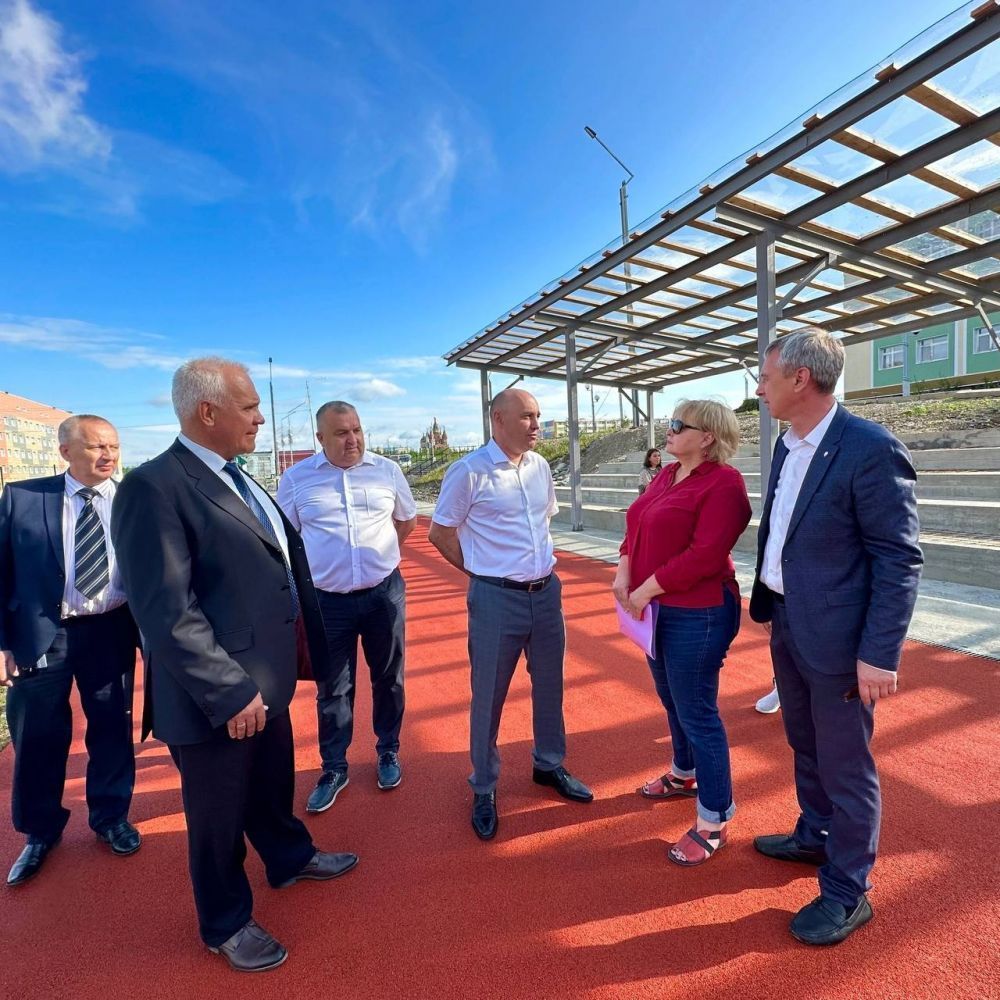 Первым пунктом назначения стал приполярный город. Глава района побывал на возводимом спортивном стадионе при школе № 19.