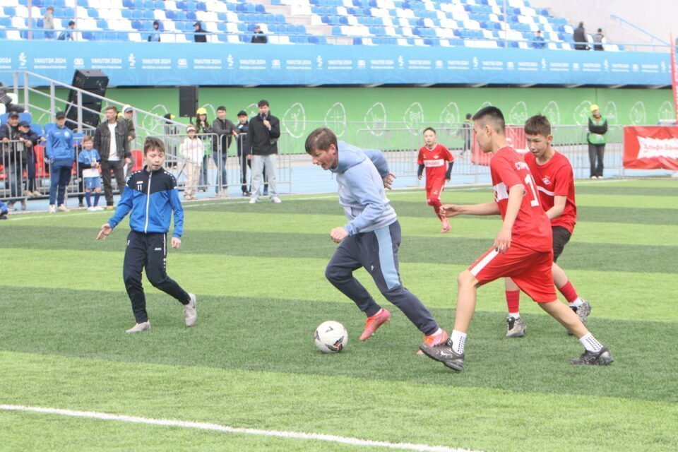 Несмотря на холодную погоду в Якутске, понаблюдать за игрой легенды футбола пришли сотни якутян, среди которых множество детей.