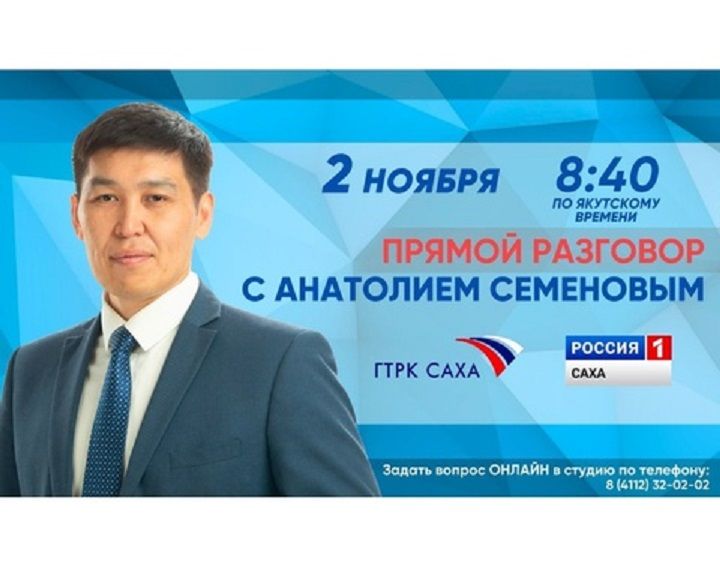 В субботу, 2 ноября в телевизионном эфире ГТРК «Саха» (Россия-1) в 08:40 министр инноваций, цифрового развития и инфокоммуникационных технологий Якутии @ anatolysemyonov примет участие в передаче «Прямой разговор».