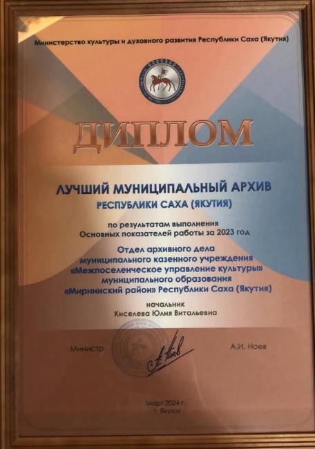 Муниципальные архивы Аллаиховского, Мирнинского, Намского, Нерюнгринского, Нюрбинского, Сунтарского, Таттинского, Усть-Алданского, Чурапчинского районов и города Якутска признаны лучшими в регионе, сообщила пресс-служба Главы Республики Саха (Якутия) и Правительства Республики Саха (Якутия).