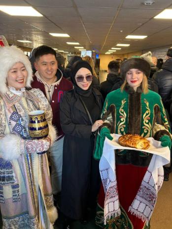 Сегодня, 22 марта, в зоне прилета аэропорта г. Мирный пассажиры рейса Новосибирск-Мирный были приятно удивлены: у выхода прилетевших встречали девушки с хлебом, солью и кумысом, как говорится, по местным традициям!