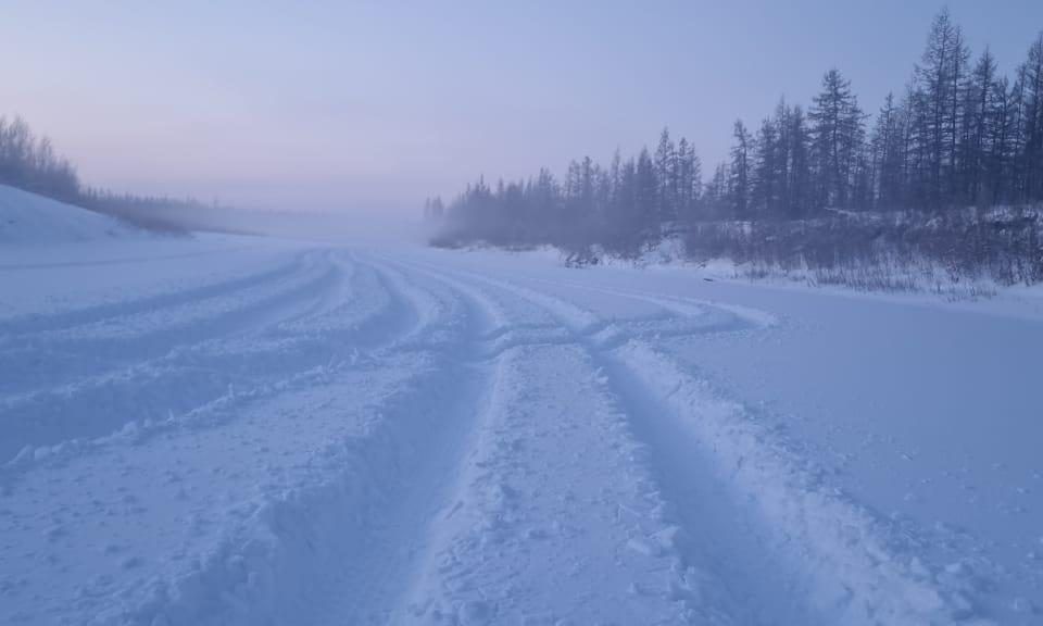 Протяженность автозимника составляет 300 км, дорога в основном проходит по реке Яне. Здесь долгое время стояла теплая погода и выпал обильный снег. Из-за этого на сегодня толщина льда в некоторых местах не превышает 20 см.