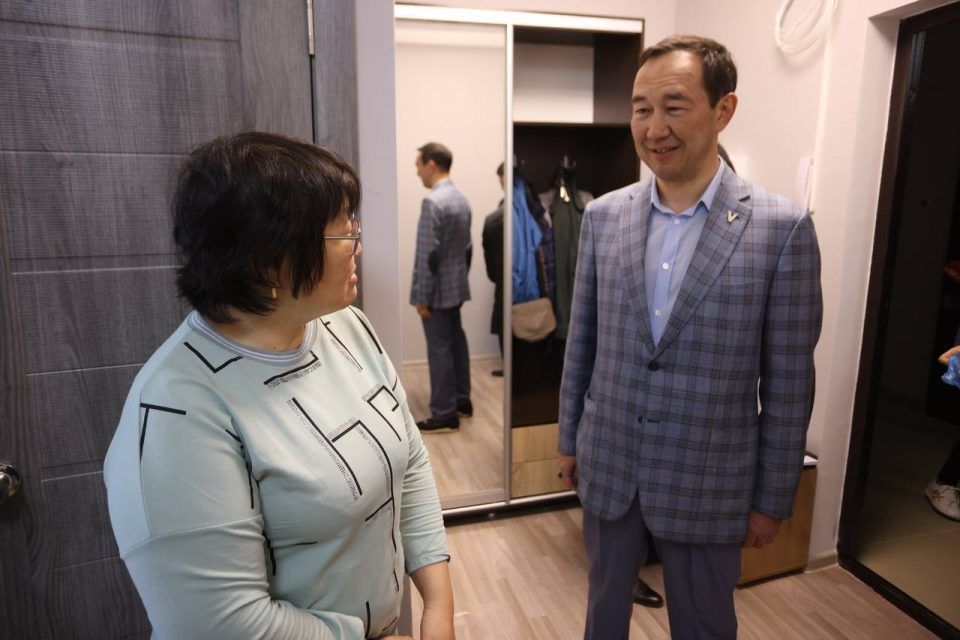 Жительницу нового микрорайона «Звездный» Якутска Валентину Чой посетил сегодня, 27 мая, глава республики Айсен Николаев. Она получила ключи от новой квартиры в начале мая по программе переселения из аварийного жилья.