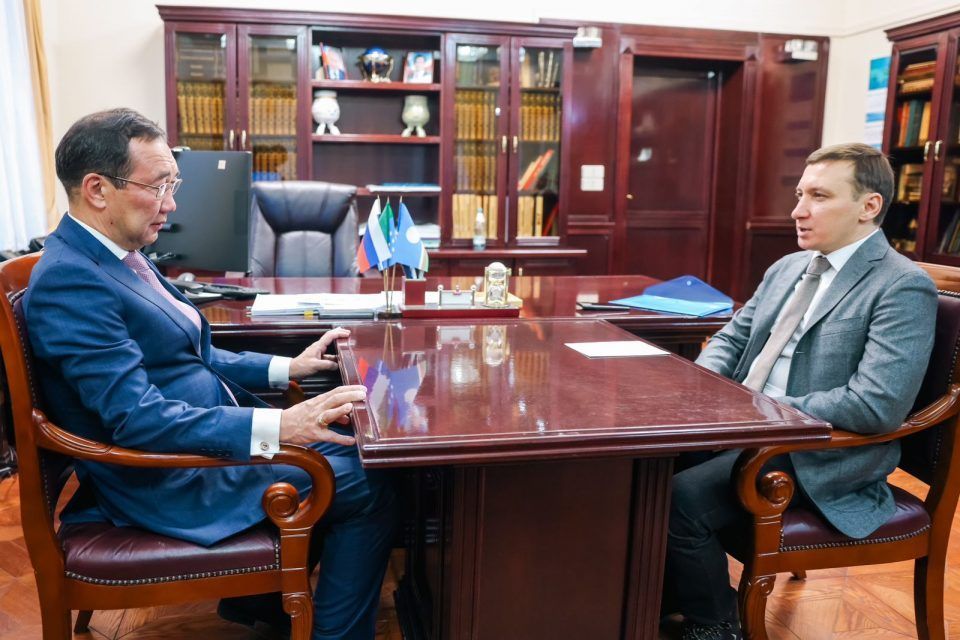 Глава Якутии Айсен Николаев сегодня, 15 ноября, в Мирном провёл рабочую встречу с генеральным директором АЛРОСА Павлом Маринычевым.
