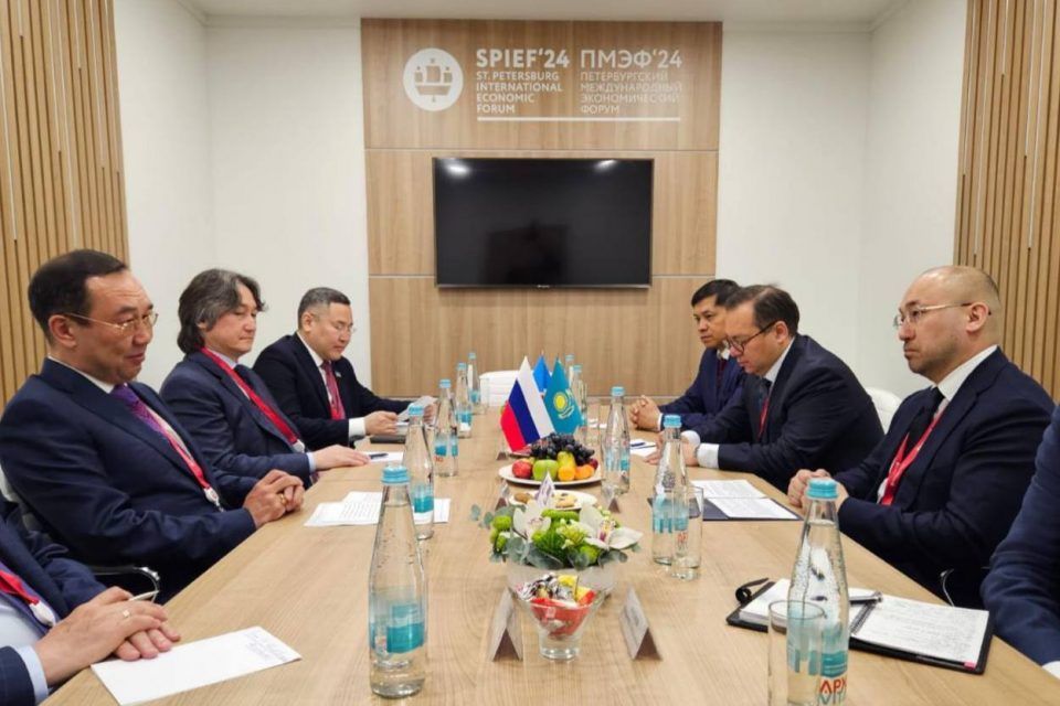 Глава Якутии Айсен Николаев провел рабочую встречу с чрезвычайным и полномочным послом Республики Казахстан в Российской Федерации Дауреном Абаевым во время 27-го Петербургского международного экономического форума.