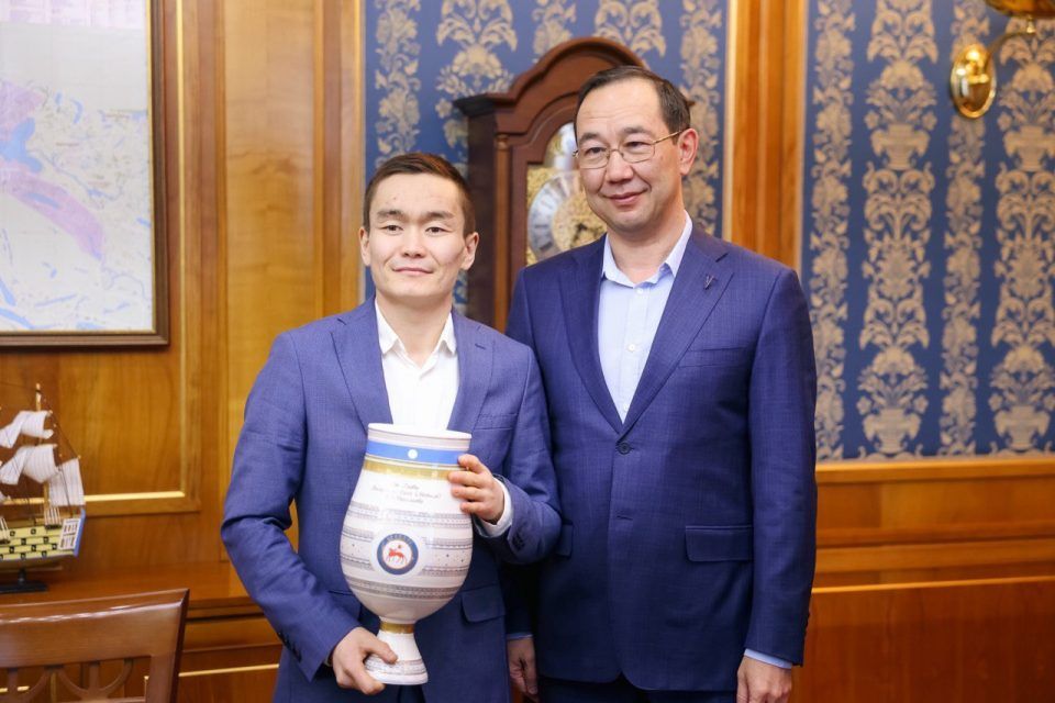 «У нас хорошее событие в мире спорта – Василий Михайлович уверенно выиграл все свои бои на Кубке России, получил путевку на чемпионат Европы. Большая благодарность от всех якутян за яркую победу, за хороший бокс. Все очень рады тому, что одержана такая победа. Мы все верим, что на чемпионате Европы вы также покажете свои лучшие качества», – сказал Айсен Николаев.