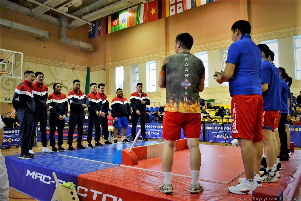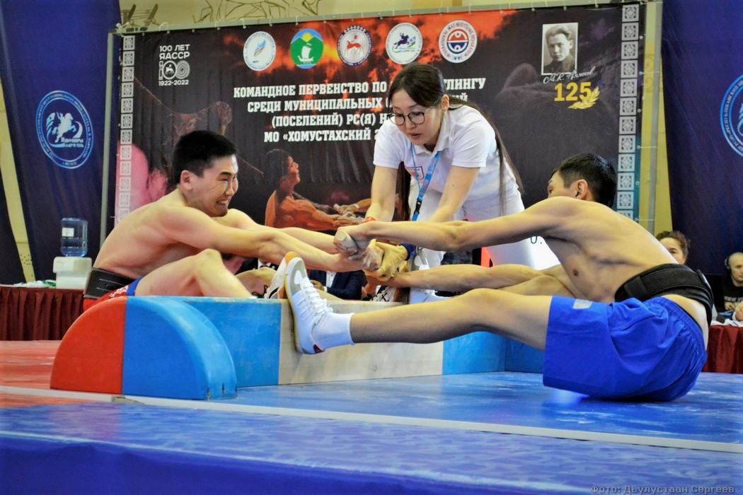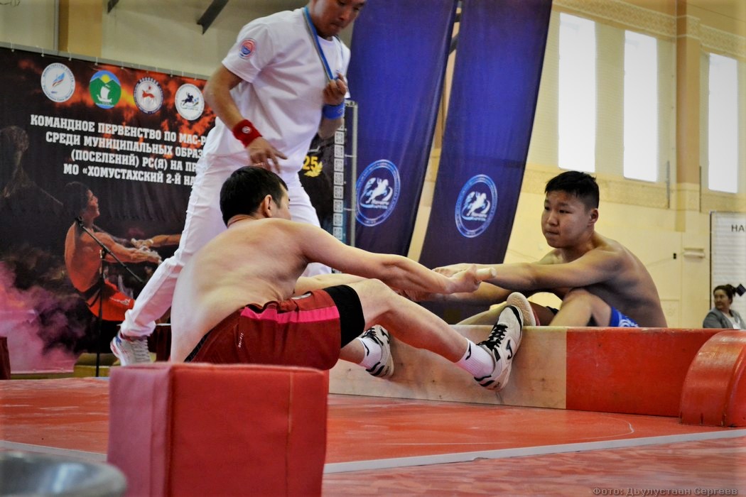 В каждой команде участвуют по семь человек — мужчины весовых категорий 60, 65, 75, 85, 95, свыше 95 кг и одна женщина до 50 кг, схватки идут в формате «стенка на стенку». Все обязаны иметь постоянную прописку в наслеге, который они представляют.