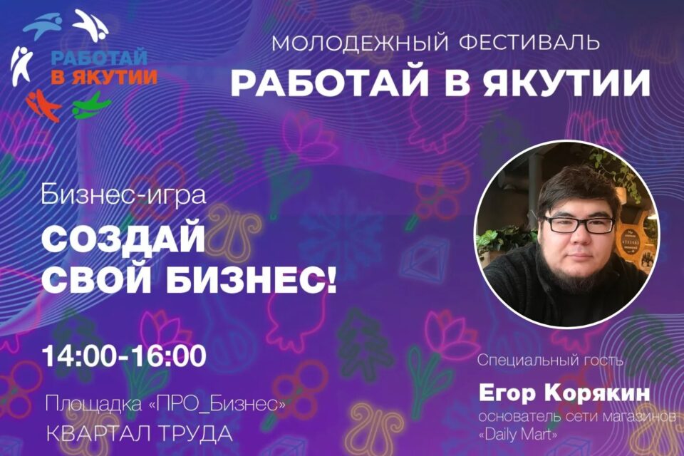 Центр «Мой бизнес» 16 июля проведет бизнес-игру «Создай свой бизнес!» на площадке «ПРО_Бизнес» в рамках молодежного фестиваля «Работай в Якутии!».
