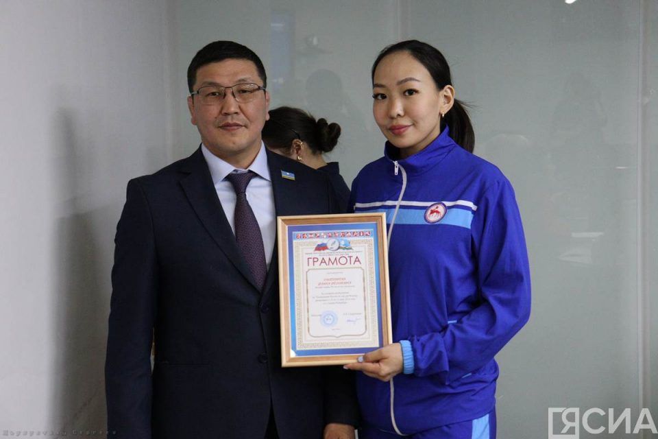 Министр вручил знак Отличника физической культуры и спорта Якутии медбрату по массажу Республиканского центра спортивной подготовки сборных команд Сергею Корнилову, а также удостоверение мастера спорта России по вольной борьбе Ньургустану Иванову.
