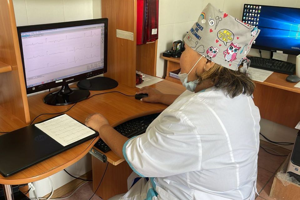 Помощь районные медики получают и у коллег республиканского кардио-сосудистого центра. Некоторые результаты на электрокардиографе направляются им. Так, за 2023 год было выполнено 119 исследований с передачей в кардиологическую больницу.