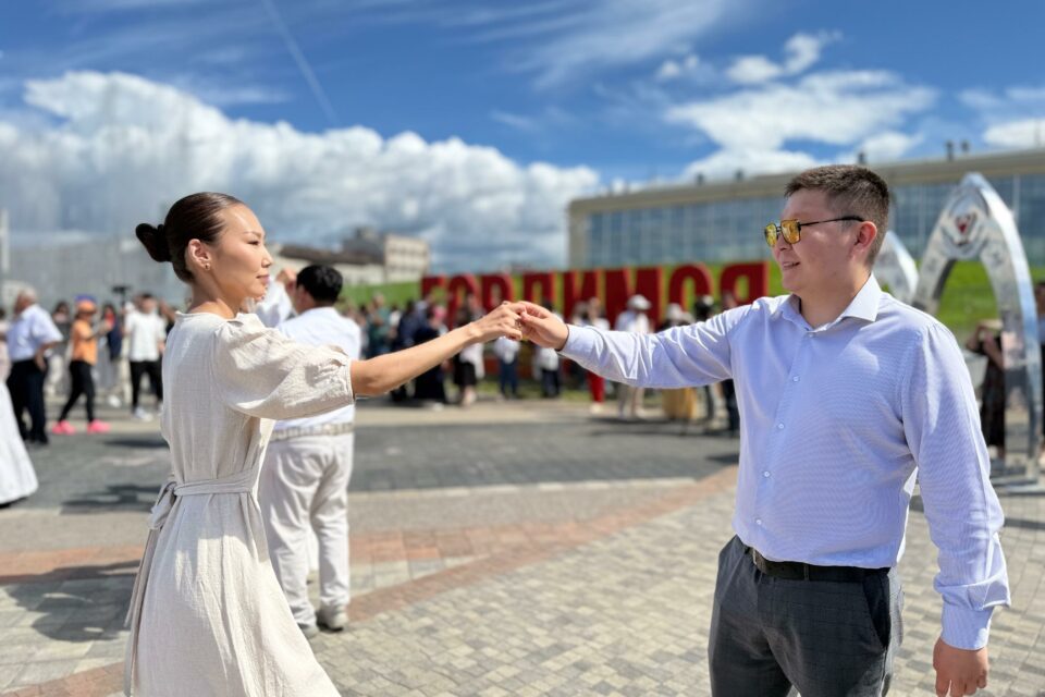 Во вторник, 8 июля, на площади Республики в Якутске состоялось празднование Дня семьи, любви и верности, организованное Управлением ЗАГС. Праздник завершился танцевальным флешмобом «Большой семейный вальс», в котором приняли участие все желающие супружеские пары, сообщает ЯСИА.