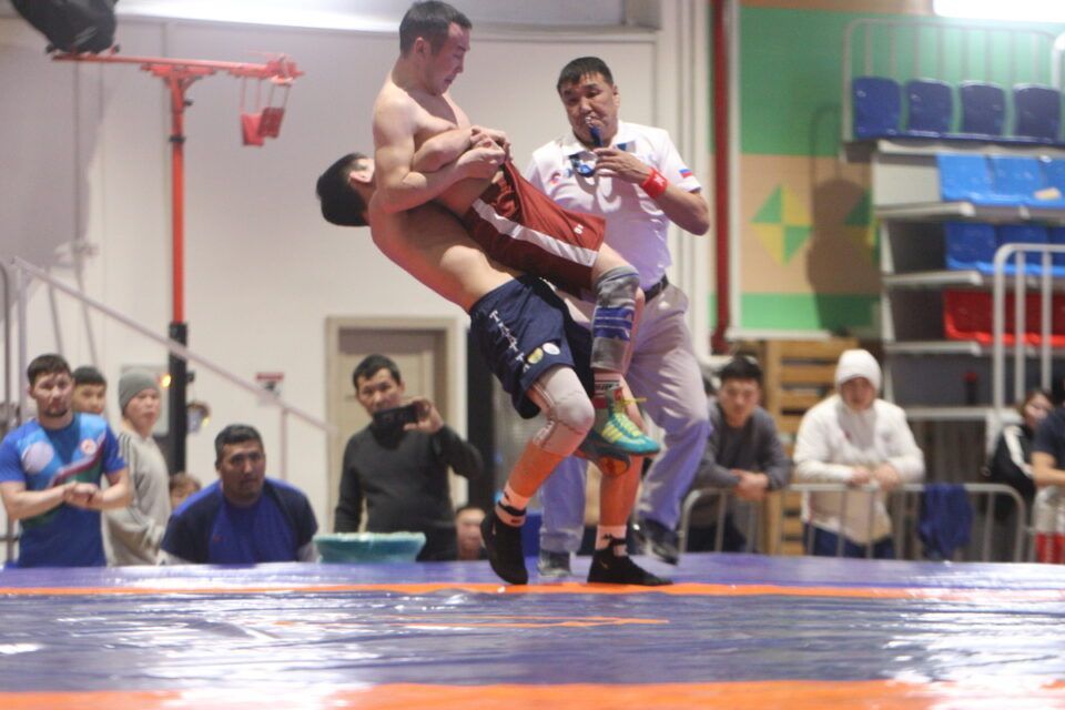 Одной из ярких встреч стало противостояние легендарных хапсагаистов Александра Румина из Намского улуса и Юрия Старостина из Верхоянского улуса в финале веса свыше 90 кг среди ветеранов. Из девяти участников именно они оспорили золото. В этот раз победа была на стороне чемпиона мира по вольной борьбе среди ветеранов Александра Румина.