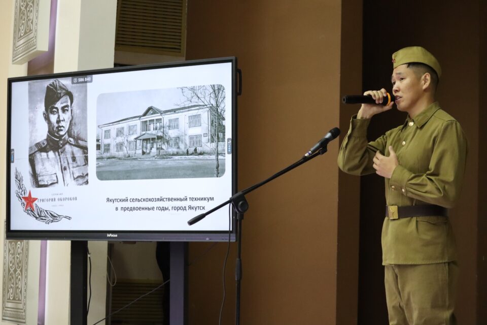 Ко Всемирному дню аудиовизуального наследия 28 октября в Якутске студентам показали документальный фильм 1970 года «Амга встречает однополчан». Кинодокумент обнаружили случайно в прошлом году. В нем запечатлены уникальные кадры, где останки сержанта Григория Окорокова привезли его семье в Амгинский район спустя 25 лет после смерти. Показ фильма состоялся в Якутском сельскохозяйственном техникуме, который окончил Окороков.
