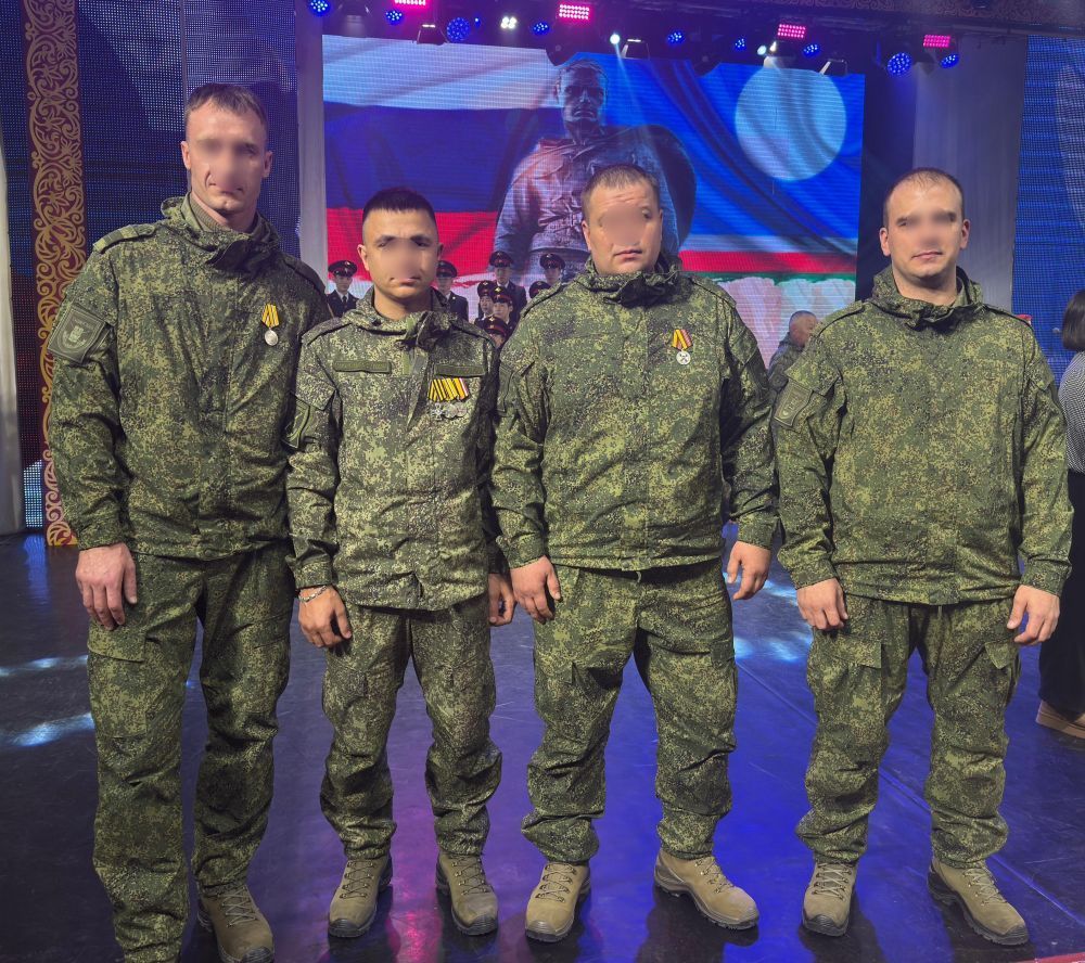 Айсен Николаев, начальник военно-политического управления Вооруженных сил РФ, генерал-лейтенант Роман Греков, заместитель губернатора — руководитель представительства Запорожской области в Москве Сергей Гуляев вручили солдатам якутянам медали и ордена.