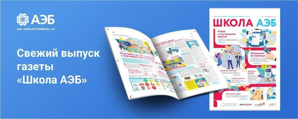 В сентябрьском выпуске газеты «Школа АЭБ» вы узнаете новости о деятельности Алмазэргиэнбанка, интересные истории от клиентов Банка, и актуальные новости по банковским продуктам. Газета распространяется во всех филиалах Алмазэргиэнбанка, а также в офисах «Мои документы» и гипермаркете «Максмаркет».