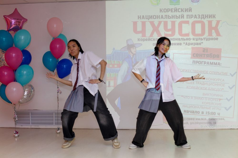 Подготовка к празднованию началась несколько недель назад. Актив корейского национально-культурного объединения организовали культурную программу, которая включала в себя как музыкальные, так и познавательно-развлекательные мероприятия. Праздновать Чхусок в Политехническом институте начали с торжественного открытия. С поздравительной речью от имени Главы Мирнинского района выступила Гульсум Бейсембаева, советник Главы района, председатель Мирнинской Ассамблеи народов, также первый заместитель Главы города Мирный Алексей Цырендоржиев, исполняющая обязанности начальника районного управления культуры Евгения Жаркинбекова, лидеры национально-культурных объединений Мирнинской Ассамблеи народов, начальник Районного управления культуры Ольга Гречаник (2008-2022 гг.), Благодарственными письмами Мирнинской Ассамблеи народов, Районного управления культуры отмечены Петр и Людмила Имехеловы, Виктория Ким, Анна Бадмаева и Сайкал Абинова.