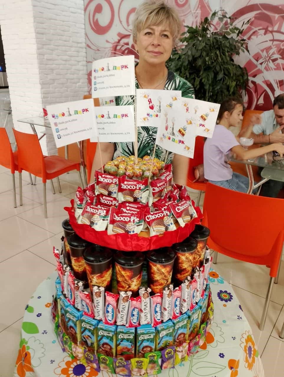 Ну и, конечно же, какой день рождения без торта: мольберты и маркеры были розданы двум командам для выполнения задания «Рисуем торт и 13 свечей». И все взялись за дело… Однако, появление настоящего торта из разных сладостей вернуло ребят в реальность: налетай, выбирай, угощайся!