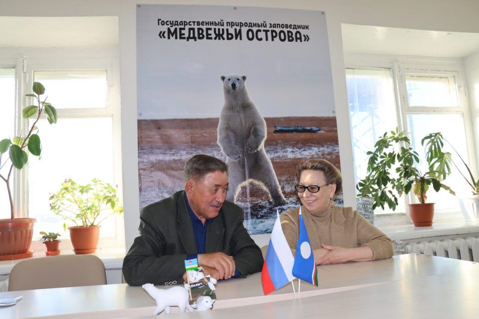 В Нижнеколымском районе депутат Госдумы РФ Галина Данчикова встретилась с руководителем государственного природного заповедника «Медвежьи острова» Иваном Суздаловым.