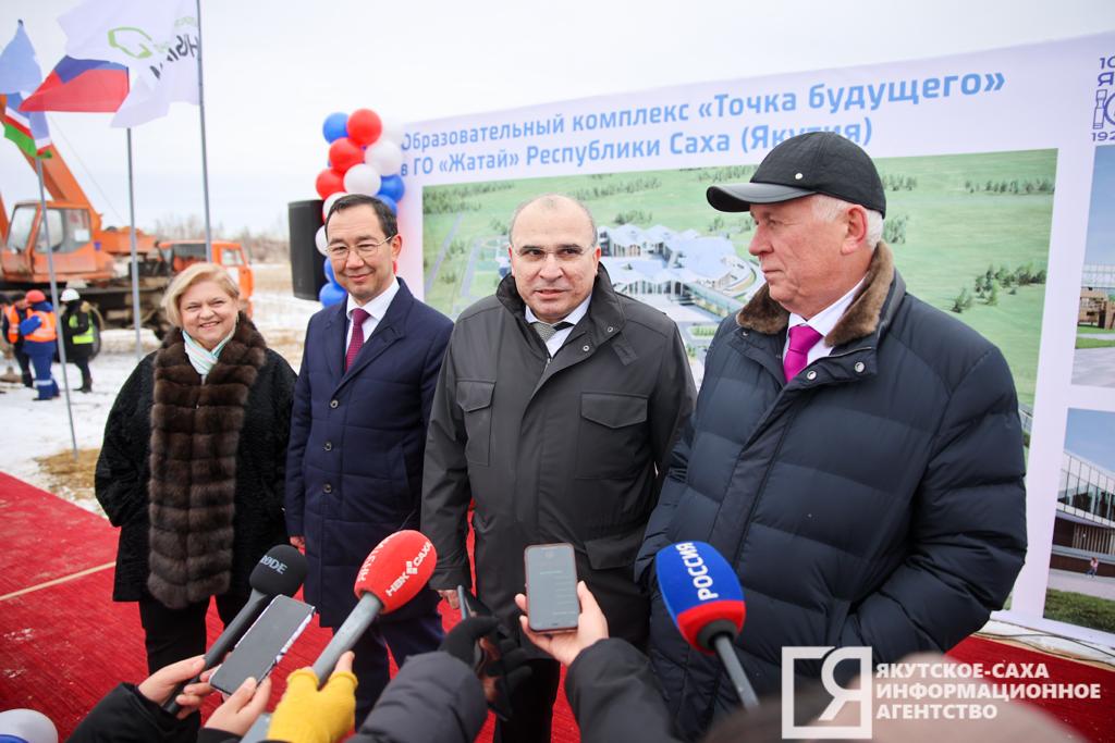 Сегодня в Жатае дали старт строительству образовательного комплекса «Точка будущего», который будет возведён на средства частного благотворительного фонда «Новый дом». В крупнейший комплекс войдут более 50 зданий и сооружений на площади не менее 60 тысяч кв. метров. Об особенностях и важности проекта рассказали глава Якутии Айсен Николаев и руководители благотворительного фонда, сообщает ЯСИА.