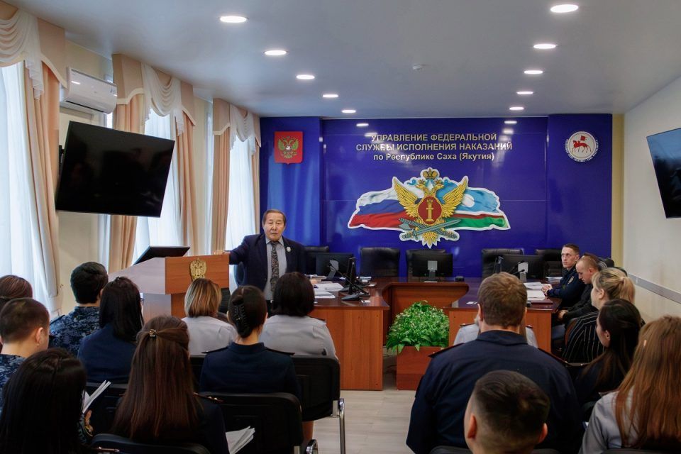 Член Ученого совета юридического факультета Северо-Восточного Федерального университета имени М.К. Аммосова, заслуженный юрист, почетный работник сферы образования, почетный работник прокуратуры России, кандидат юридических наук, профессор кафедры уголовного права Макар Яковлев выступил перед сотрудниками УФСИН с лекцией о противодействии коррупции.
