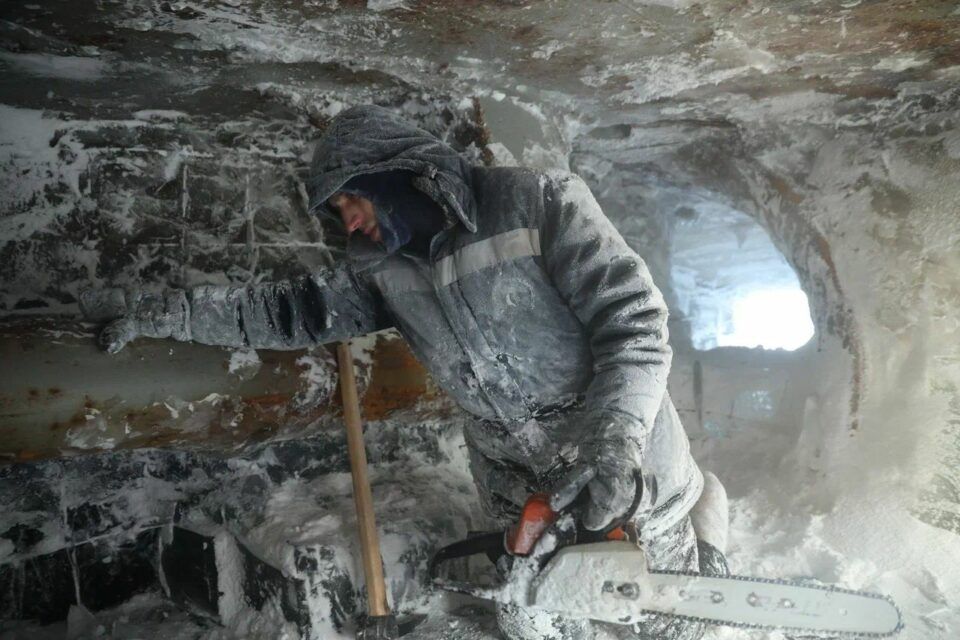 Благодаря низким температурам, работы идут по плану и даже с опережением. Если в предыдущие годы выморозка начиналась в ноябре, то в этом году из-за теплой затяжной осени работы начались на 2 недели позже. Несмотря на это, работы планируется завершить в марте.