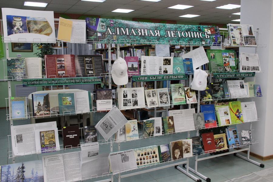 В детском отделении центральной библиотеки города Мирный организована выставка «Алмазная летопись», где можно увидеть 30 книг члена Союза писателей России, главы Мирнинского района Ришата Юзмухаметова.