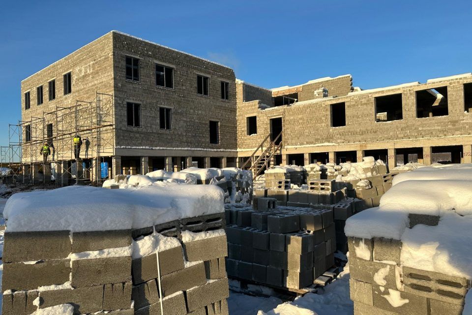 Первую сваю дома-интерната торжественно установили 11 апреля. На сегодняшний день строительная готовность составляет 33%. Выполнены работы по монтажу плит перекрытий цокольного и первого этажей, кладка несущих стен первого и второго этажей, планировка под отмостку, каркас окон административного блока. На объекте работают 20 человек. Выполняются работы по вертикальной планировке территории, работы по зимней кладке.