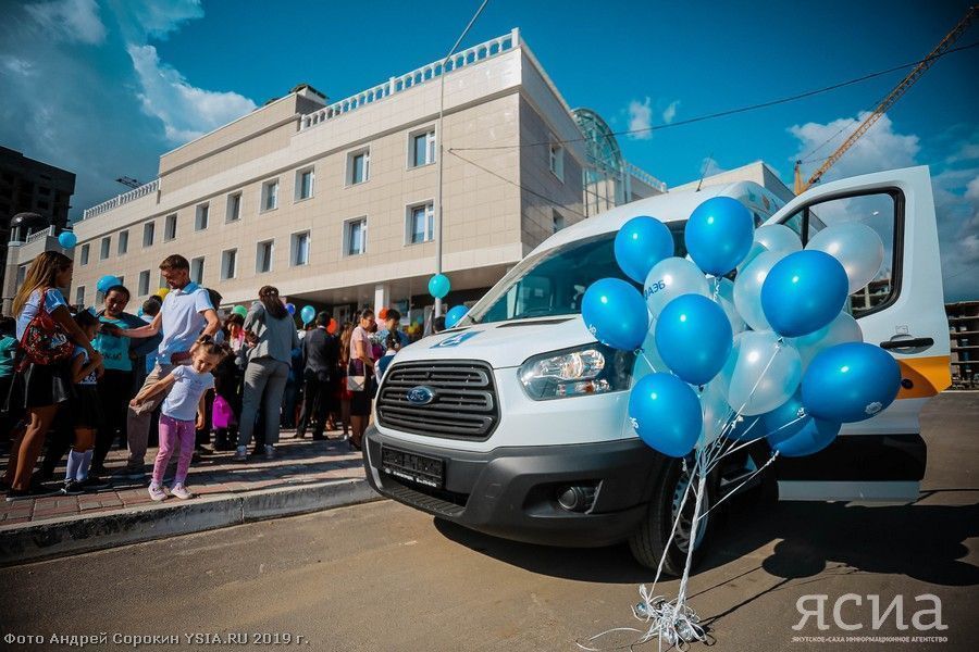 Начался поиск транспорта, который соответствовал бы всем мировым стандартам перевозки маломобильных граждан юного возраста. Остановились на марке Ford Transit, который специально был переоборудован на заводе в Нижнем Новгороде. Доблестные водители банка, пожертвовав отпуском, перегнали автомобиль в Якутск, и сегодня он стал одним из главных украшений праздника для всех присутствовавших на торжественной линейке школы.