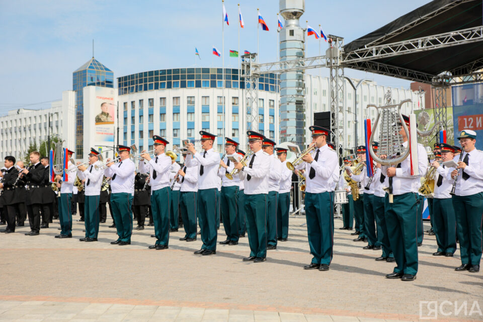 На площади Республики в Якутске 12 июня прошёл концерт в рамках V межрегионального фестиваля духовых оркестров и исполнителей на духовых и ударных инструментах «Фанфары земли Олонхо». Мероприятие стало частью праздничной программы, посвящённой Дню России, Году Защитника Отечества и 80-летию Победы в Великой Отечественной войне, сообщает ЯСИА.