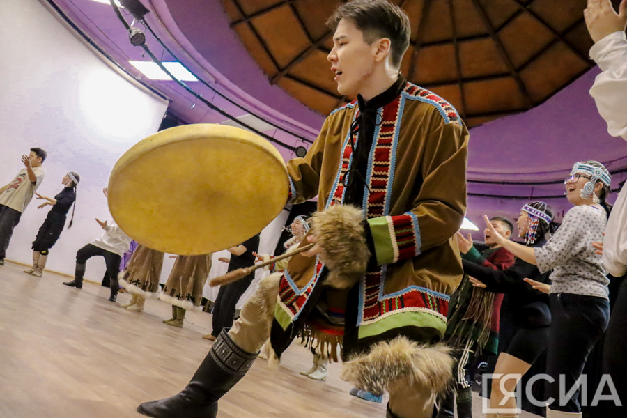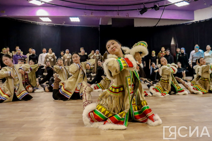 Арктический государственный институт культуры и искусств (АГИКИ) 26 апреля проводит отчетный концерт кафедры народной художественной культуры «Дыхание предков», где участники отразят уникальность культуры народов Севера и Азии. Одним из ярких номеров станет тойук «Төрөөбүт тыл» в честь 100-летия Якутской АССР и Года культурного наследия в России, который одновременно исполнят 100 человек разного возраста на сцене Центра культуры и современного искусства им. Гагарина. О предстоящем зрелище и ходе репетиции масштабного представления — в материале ЯСИА.