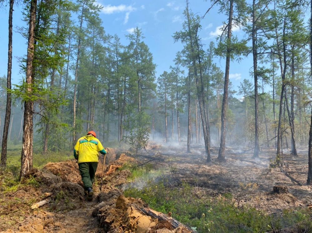 На тушении работают 19 человек, из них 11 работников Мирнинского отделения и 8 работников Сунтарского отделения ГБУ РС (Я) «Якутская база авиационной охраны лесов».