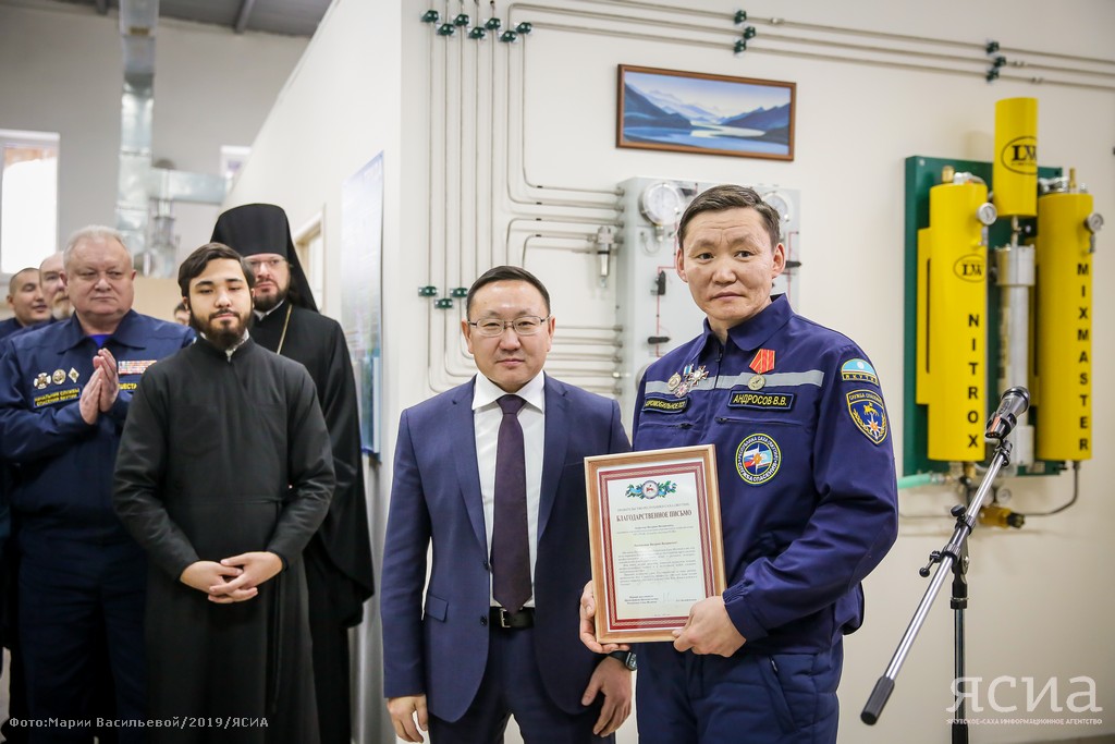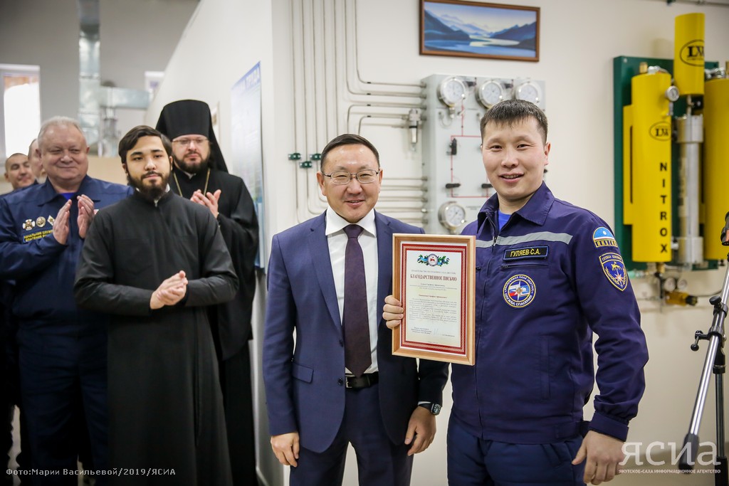 Он вручил благодарственное письмо правительства РС(Я) спасателям Валерию Андросову и Серафиму Гуляеву.