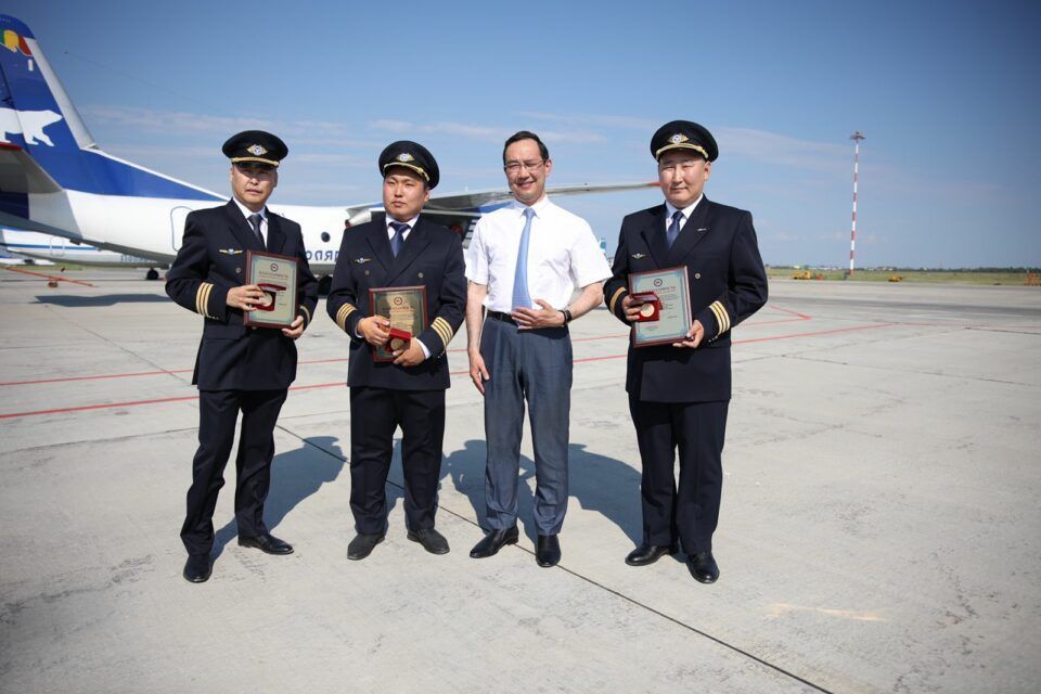 Александр Евсеев, Григорий Иванов и Василий Винокуров работают в «Полярных авиалиниях» более десяти лет и имеют опыт полётов по всей территории республики — в тундре, в горах.