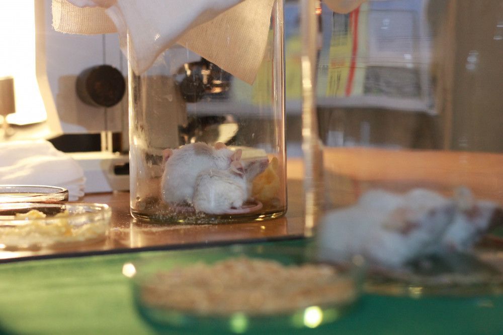 Мыши слева питаются вредной пищей, справа — здоровой14-летняя Лилиана Замятина, ученица 8 «Д» класса школы №7 Якутска, на фестивале науки представила свой эксперимент с белыми мышами, который она проводит в лаборатории Якутского НИИ сельского хозяйства. Проект является творческим заданием, которое она должна защитить в мае.