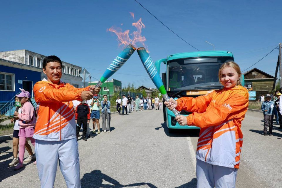 По центральным улицам поселка факел пронесли ветераны спорта и юные спортсмены Кобяйского района. Среди них — Николай Мосин, Роман Сметанин, Сергей Варфоломеев, Игнат Березкин, Роман Ибрагимов, Акулина Халгаева, Милена Моркан, Милена Шурупова и Мария Григорьева.