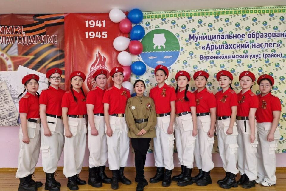 В Арылахском наслеге торжественное мероприятие состояло в сельском центре культуры. Ветераны тыла и участник специальной военной операции обратились к молодежи с напутственными словами. Местные самодеятельные артисты подготовили поздравительный концерт, подчеркнув, что Знамя Победы является не просто знаком, а символом Великой Победы.