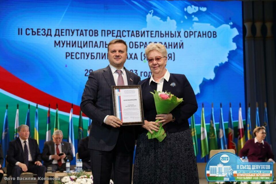 Во время пленарного заседания II Съезда депутатов представительных органов муниципальных образований Республики Саха (Якутия) состоялась церемония вручения наград.