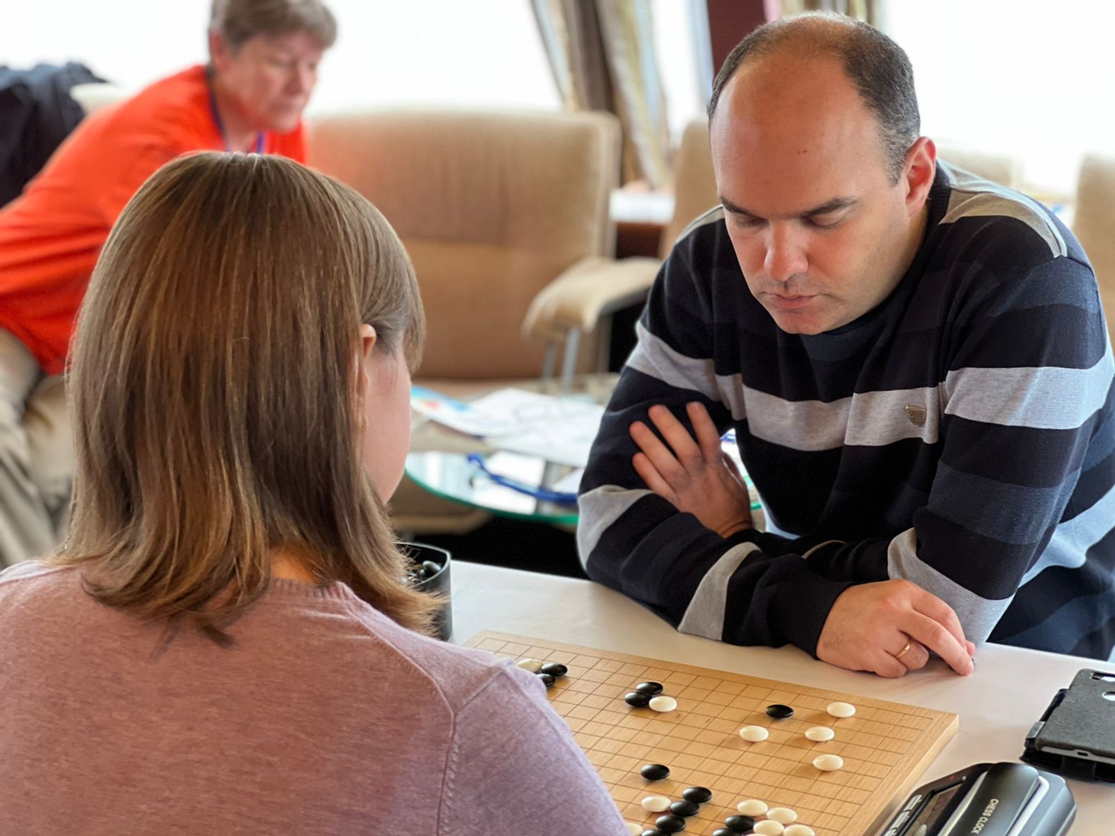 «Я впервые в Якутии. Организация – идеальная. Видно, что у организаторов есть большой опыт проведения крупных мероприятий. Город пока толком не успел посмотреть. Мне как-то довелось участвовать на турнире по го на теплоходе по Волге. Иногда немного трясётся доска во время игры, а так особых неудобств нет. По рейтингу я сейчас на третьем месте среди всех участников. Шансы попасть в призы должны быть. Но, как это частенько бывает, в борьбу за награды может вмешаться подрастающее поколение. Ребята в возрасте 13-15 лет. Они становятся сильнее, буквально ежечасно, и рейтинг-система не успевает отслеживать этот рост», — прокомментировал семикратный чемпион Европы и четырехкратный чемпион России Александр Динерштейн из Казани.
