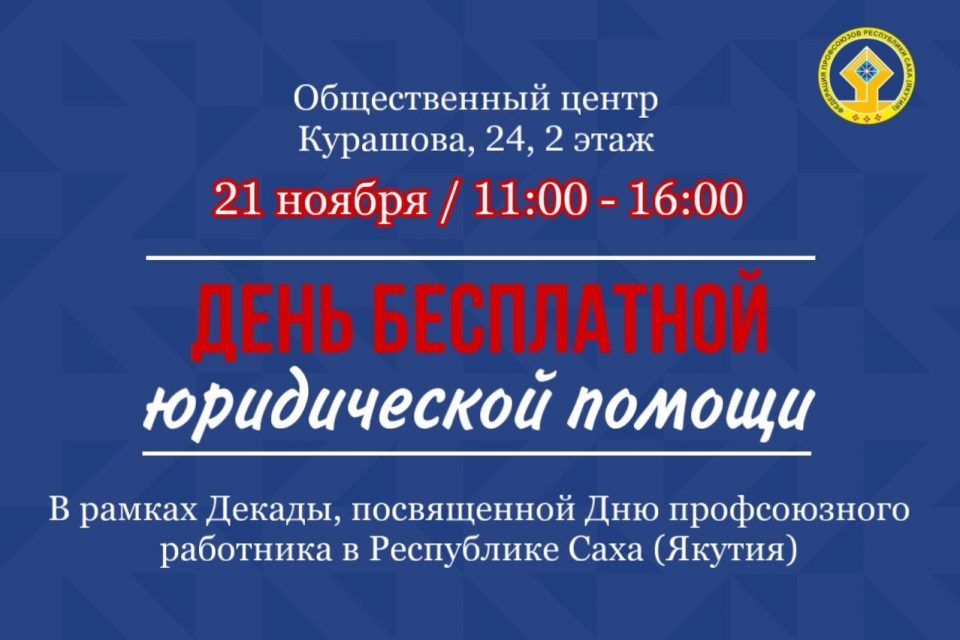 Федерация профсоюзов Якутии приглашает 21 ноября 2023 года на День бесплатной юридической помощи населению.