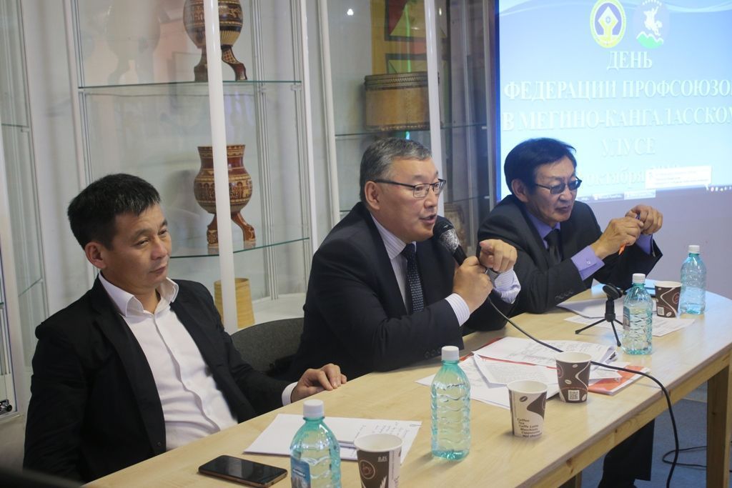 От имени руководства Мегино-Кангаласского улуса к группе Федерации профсоюзов республики обратился заместитель главы Николай Цыпандин, который выразил благодарность профсоюзам за сотрудничество с администрацией улуса, готовность помочь и поддержать и системную работу по контролю за соблюдением трудового законодательства и тесную взаимосвязь с профсоюзным активом улуса.
