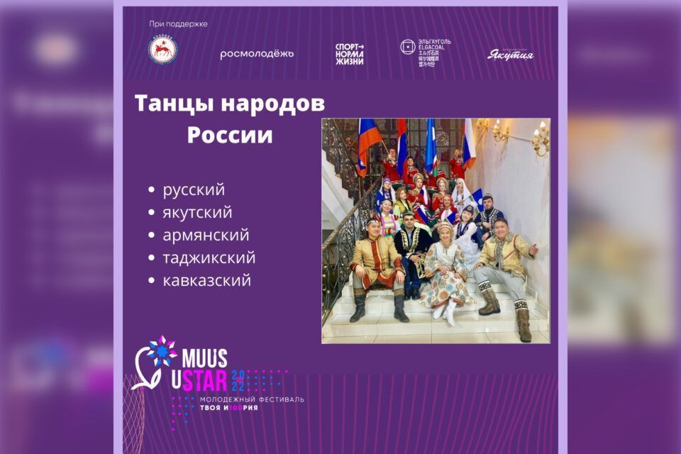 В рамках молодежного фестиваля «Muus uSTAR» в СК «Триумф» 26 марта пройдет корнер «Танцы народов России», сообщает пресс-служба Минвнешсвязи Якутии.