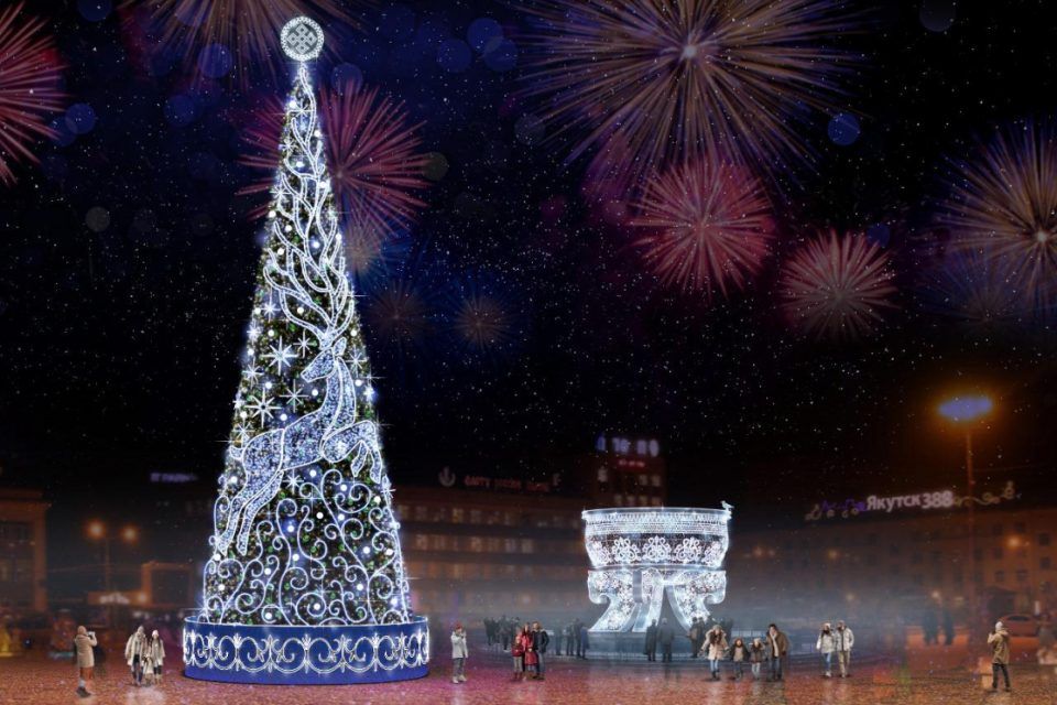 Новогоднюю ель украсит северный олень, а фонтан — световая конструкция в виде якутской национальной посуды кытыйа на ножках в форме голов лошадей.