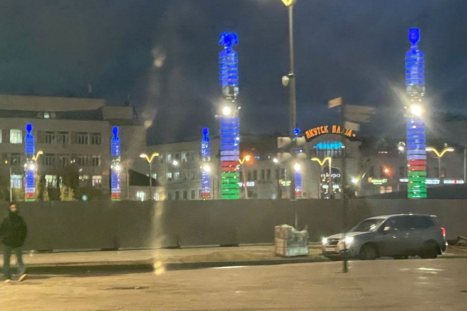 В День государственности республики, 27 сентября, колонны-сэргэ на реконструируемой площади Ленина в столице региона подсветили в цвета флага Якутии. Напомним, что благоустройство площади должно завершиться в начале октября.