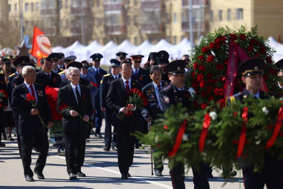 9 мая в Якутске на площади Победы прошла церемония возложения цветов к монументу «Воинам-победителям», а также военно-патриотический парад, посвящённые 80-летию Победы в Великой Отечественной войне.