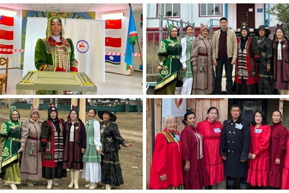 В районах Якутии избиратели создают атмосферу праздника, приходя на голосование в национальных костюмах: