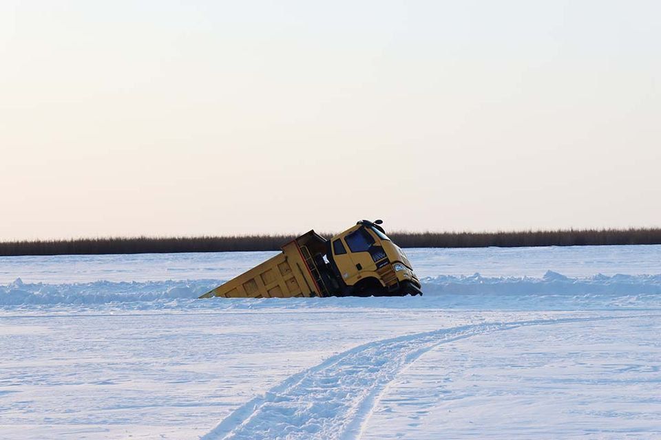 В 15 км от поселка Черский Нижнеколымского района на участке автозимника «Арктика» 6 апреля частично провалился по лед груженый самосвал. Информацию подтвердили в пресс-службе ГУ МЧС России по Якутии.